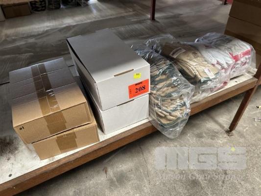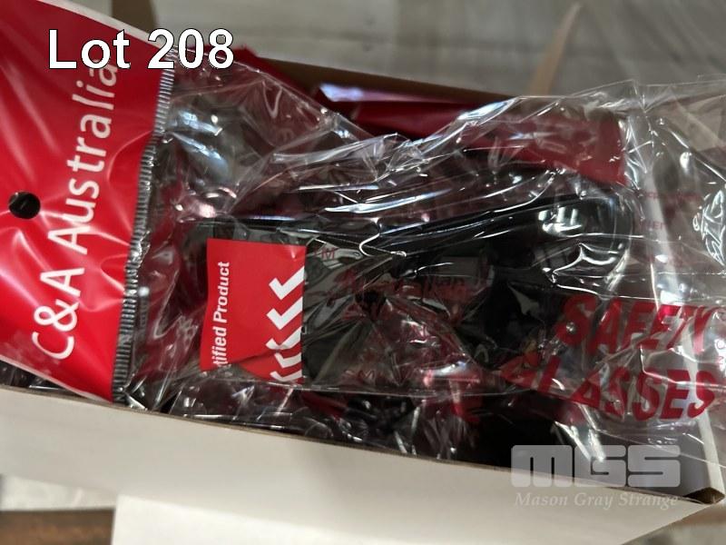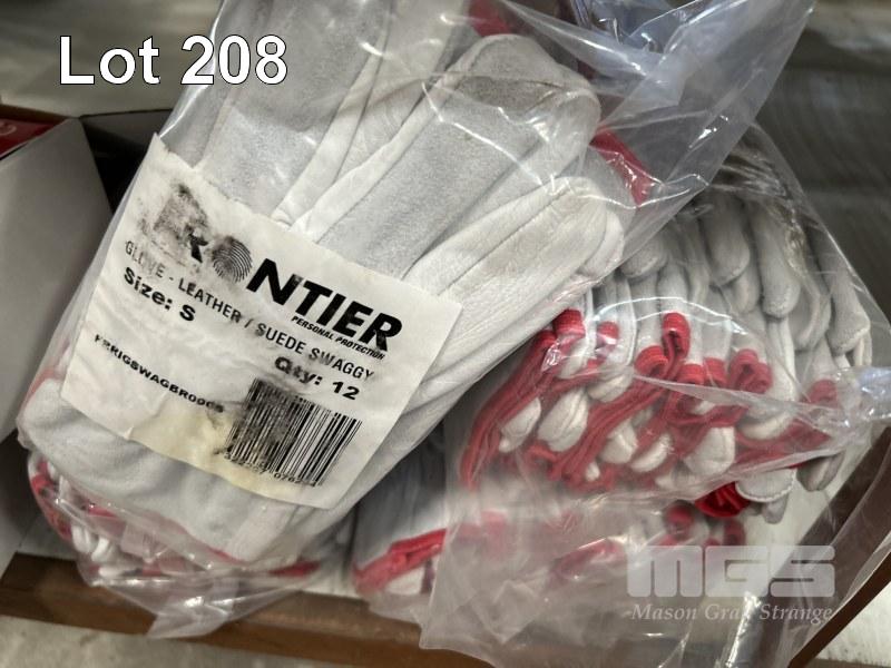 24 x PAIRS GLOVES, FRONTIER, LEATHER SUEDE SWAGGY SIZE: S 24 x PAIRS RIGGA MATE, LEATHER SIZE: M SAFETY GLASSES, C&A TINTED, 2 x BOXES (12/BOX) & GLOVE BELT CLIPS, 2 x BOXES AS NEW