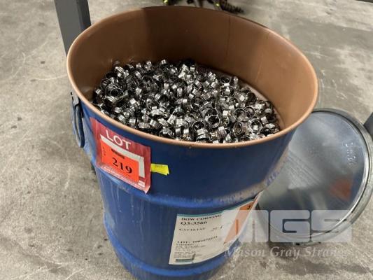 HUGE QUANTITY HOSE CLAMPS, GEMI 12 TO 20mm DIAMETER 1 x 100 LITRE DRUM, FULL NEW