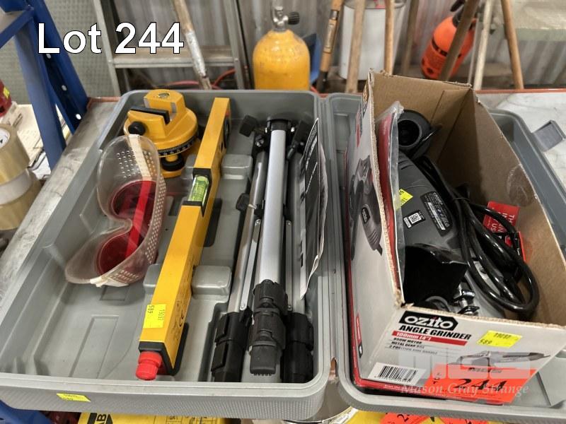 LASER LEVEL KIT & ANGEL GRINDER, OZITO, 100mm 240V, AS NEW
