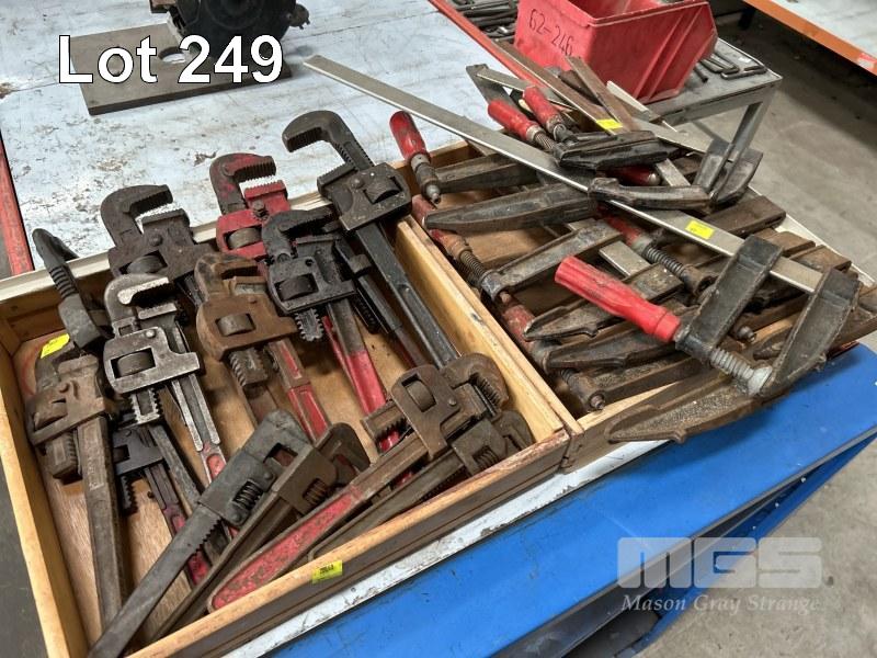 14 x ASSORTED PIPE WRENCHES, 200 TO 400mm & 12 x SLIDING F CLAMPS, 350 TO 700mm