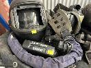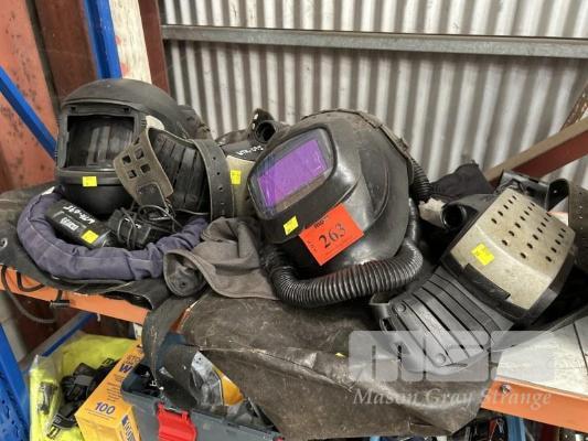 2 x POSITIVE AIR FEED WELDING HELMETS, 3M ADFLO WITH 2 x CORDLESS FAN UNITS, 1 x BATTERY & CHARGER IN CARRY BAGS