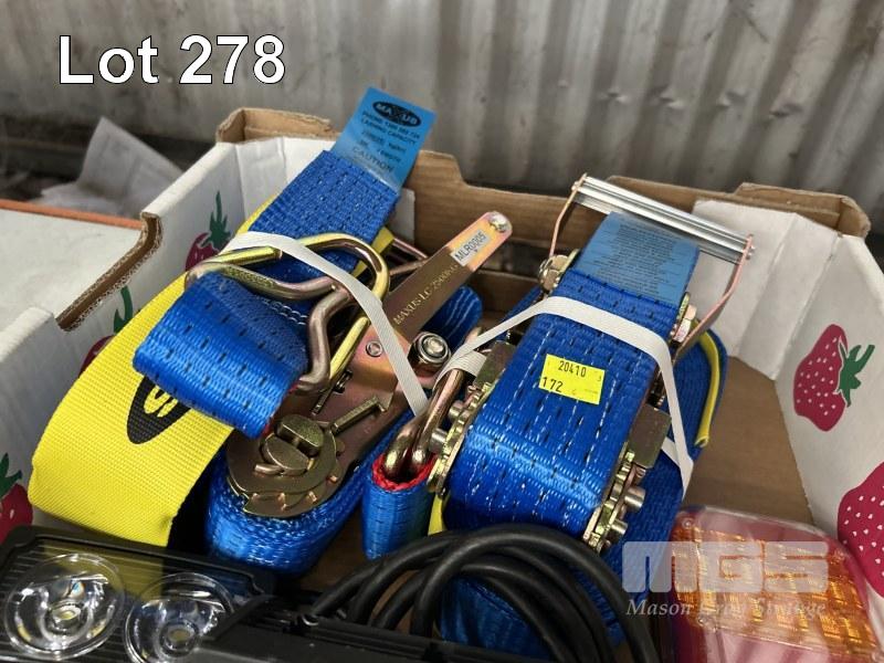 ASSORTED LED VEHICLE LIGHTS, 12/24V & 2 x MAXUS RATCHET STRAPS, 2500kg x 9m (L)