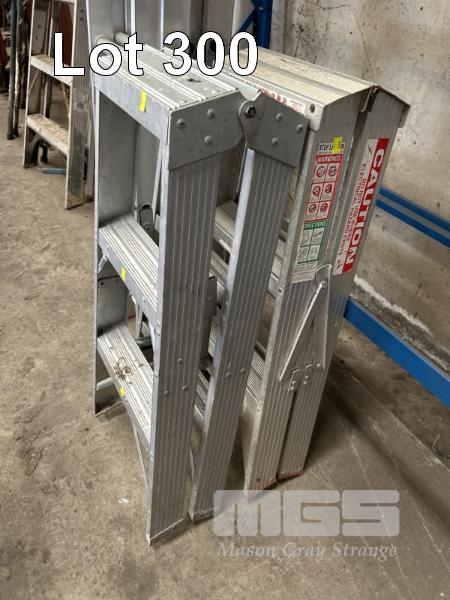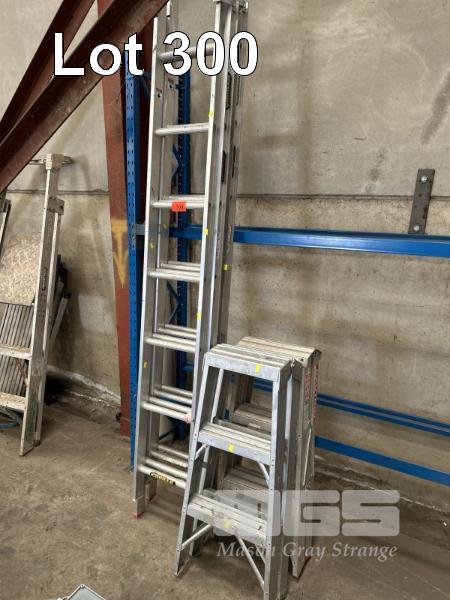 2 x EXTENSIONLADDERS, ALLOY, GORILLA, 2.4 TO 3.9m, 100kg MAX LOAD & 2 x STEP LADDERS, ALLOY INDUSTRIAL, 1.2m, 120kg