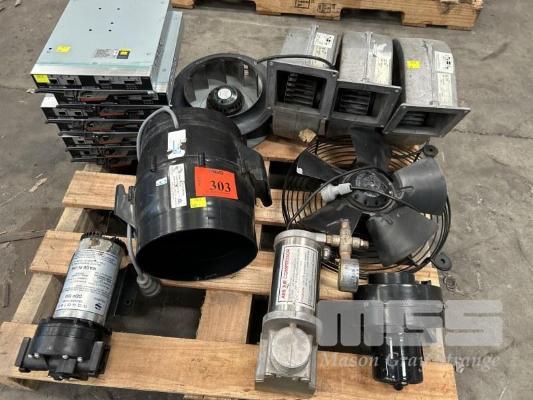 ASSORTED EXTRACTION FANS, 240V & 12V DC, AIR COMPRESSOR, 12V, FLUID PUMP, 24V DC, ETC 1 x PALLET
