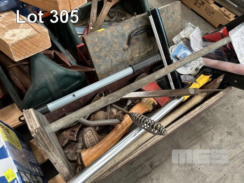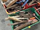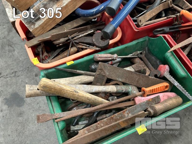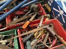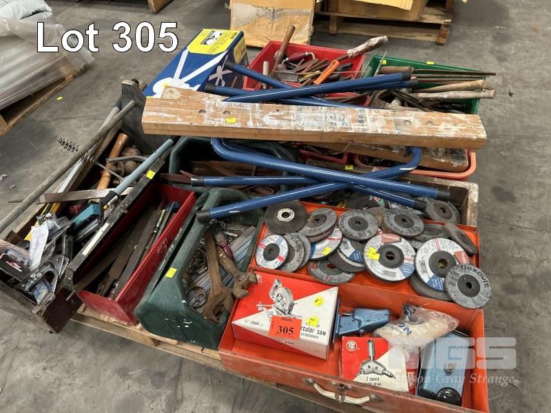 LARGE QUANTITY HAND TOOLS INCLUDING SAW HORSE STANDS, FILES, PRY BARS, HAMMERS, RIVET GUNS, SHIFERS, GRINDING DISCS, ETC, 1 x PALLET