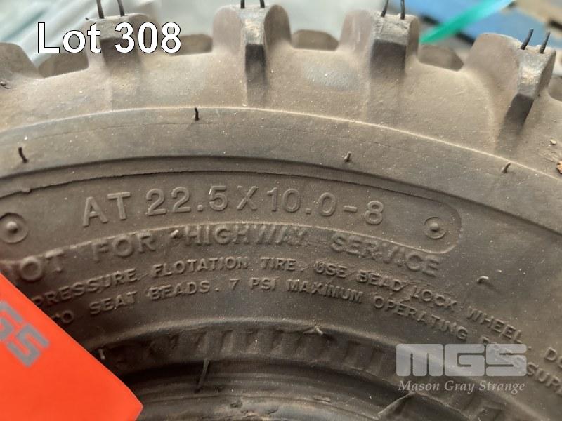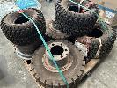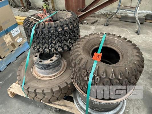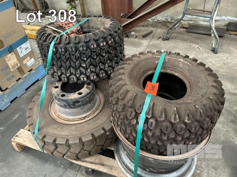 2 x FORKLIFT TYRES & RIMS, 7.00-12 NHS & 3 x ATV TYRES INCLUDING HD FIELD TRAX AT 22.5x10.0-8 & AT25x13-9, NEW 1 x PALLET