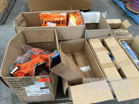 WORKSHOP SAFETY EQUIPMENT INCLUDING COVERALLS, BROOM HEADS, DUST PANS & BRUSHED, GLOVES, WELDING HOODS, ETC 1 x PALLET