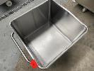 FOOD GRADE STAINLESS STEEL EURO TUBS, MOBILE, 200L CAP, ROLLED EDGES, HEAVY DUTY SOLID WHEELS, INTERNAL DIMESNIONS: 620 x 620 x 500mm