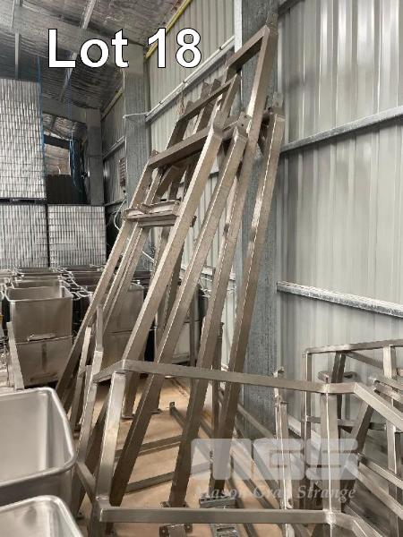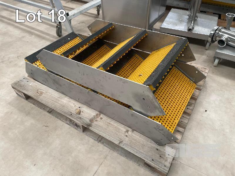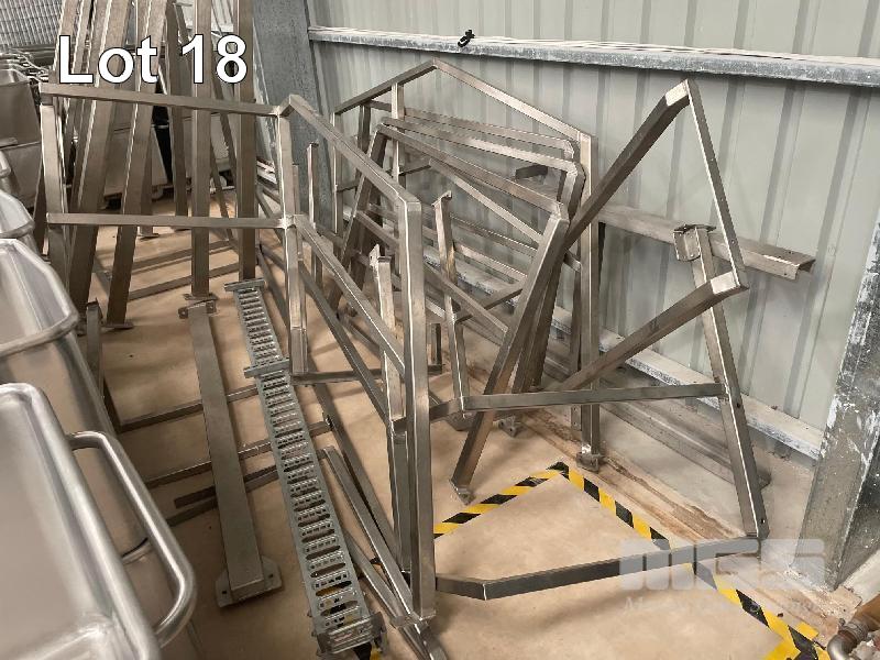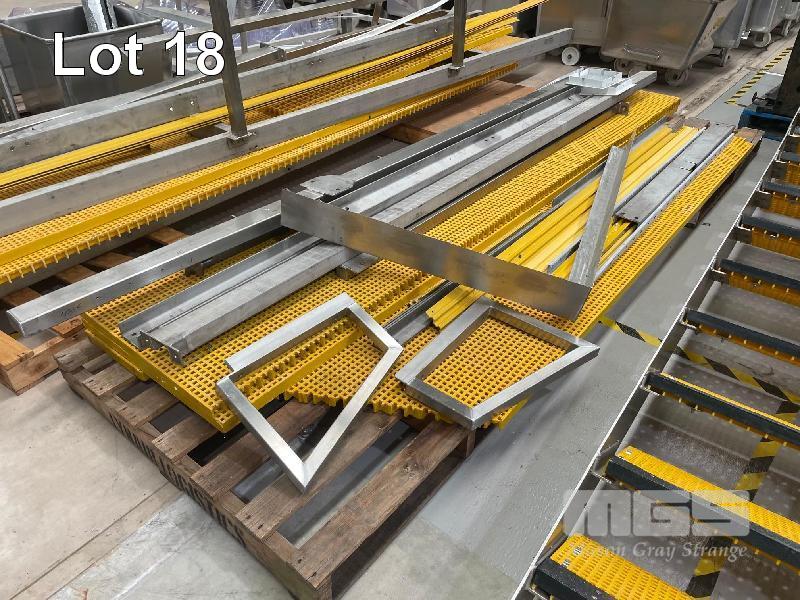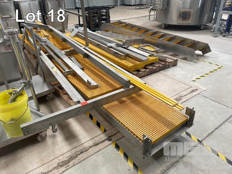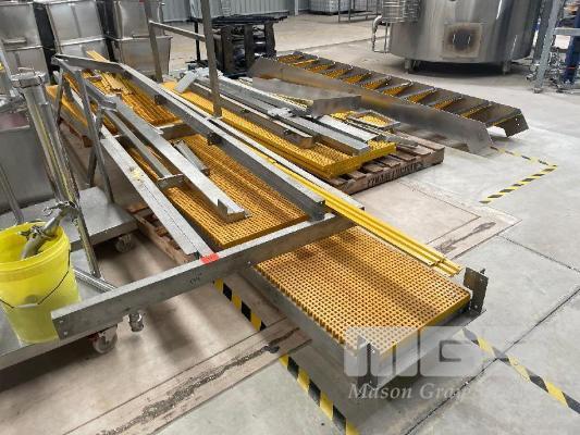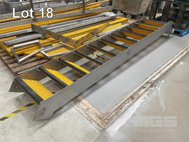 3 TIER STAINLESS STEEL FRAME WORK PLATFORM, WITH FIBRE REINFORCED PLASTIC GRIT SURFACE FLOORING & STAIRWAY, APPROX 14m(L) TIER 1: 2.2m (H) TIER 2: 2.8m (H) TIER 3: 3.3m (H) NOTE: DISMANTLED