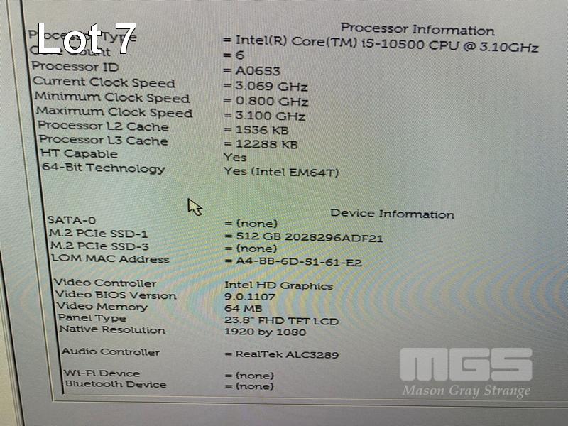 ALL-IN-ONE PC, DELL OPTIPLEX 7480, CORE i5 10500 (10TH GEN) @ 3.1GHz, 8GB DDR4 RAM, 512GB NVMe M.2 SSD, INBUILT 23.8" FHD WIDESCREEN (1920x1080), INTEL HD VIDEO, WEBCAM, 5 x USB, 1 x USB-C, WINDOWS 11 HOME INSTALLED, KEYBOARD & MOUSE S/N:4XQ1X63