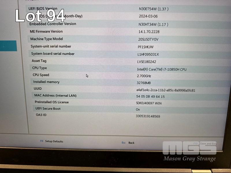 LAPTOP, LENOVO THINKPAD P15 GEN 1 MOBILE WORKSTATION, TYPE 20SU, CORE i7 10850H (10TH GEN) @ 2.7GHz, 32GB DDR4 RAM, 1TB NVMe M.2 SSD, 15.6" WIDESCREEN (1920x1080), 4GB NVIDIA QUADRO T2000 VIDEO, Wi-Fi, BLUETOOTH, WINDOWS 11 PRO INSTALLED & POWER SUPPLY (NOTE: MARKS ON SCREEN) S/N:PF1SHKJW