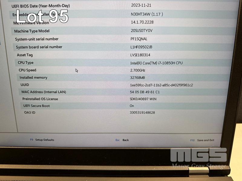 LAPTOP, LENOVO THINKPAD P15 GEN 1 MOBILE WORKSTATION, TYPE 20SU, CORE i7 10850H (10TH GEN) @ 2.7GHz, 32GB DDR4 RAM, 1TB NVMe M.2 SSD, 15.6" WIDESCREEN (1920x1080), 4GB NVIDIA QUADRO T2000 VIDEO, Wi-Fi, BLUETOOTH, WINDOWS 11 PRO INSTALLED & POWER SUPPLY (NOTE: MARKS ON SCREEN) S/N:PF1SQNAL