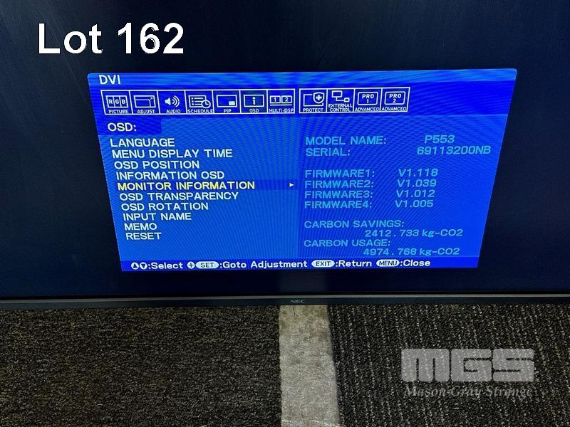 MONITOR, NEC MULTISYNC P553 55" COMMERCIAL LCD DISPLAY (NO REMOTE, NO STAND) S/N:69113200NB