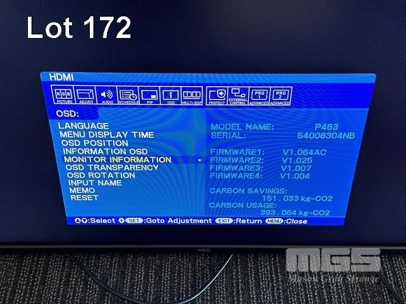 MONITOR, NEC MULTISYNC P463 46" COMMERCIAL LCD DISPLAY (NO REMOTE, NO STAND) S/N:54008304NB