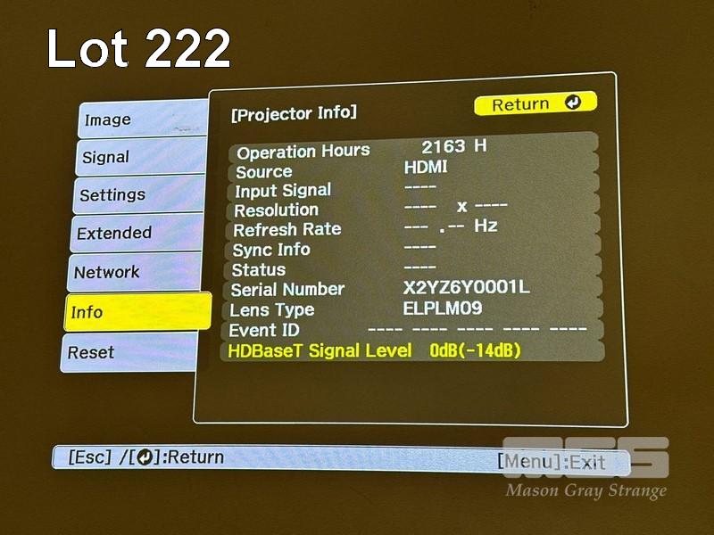 LASER PROJECTOR, EPSON EB-L1505U 3LCD, 12,000 LUMENS, MIDDLE-THROW LENS (ELPLM09), 2,163 HOURS SHOWING WITH REMOTE S/N:X2YZ6Y0001L
