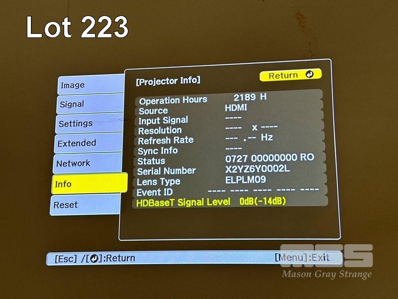 LASER PROJECTOR, EPSON EB-L1505U 3LCD, 12,000 LUMENS, MIDDLE-THROW LENS (ELPLM09), 2,189 HOURS SHOWING WITH REMOTE S/N:X2YZ6Y0002L