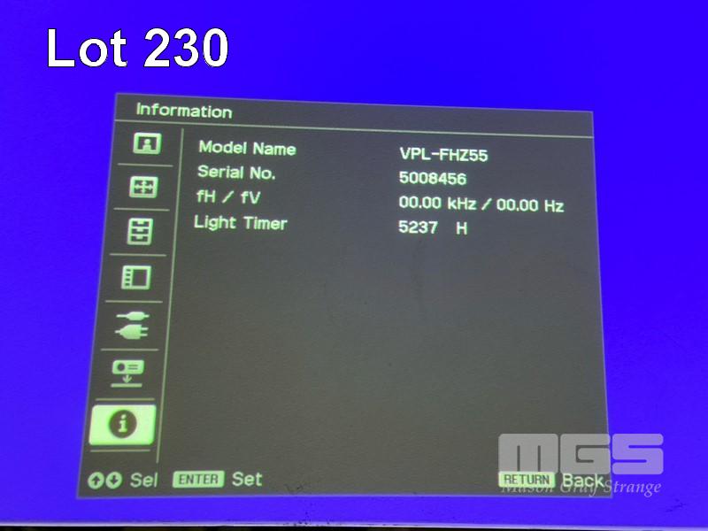 LASER PROJECTOR, SONY VPL-FHZ55 WUXGA 3LCD, 4,000 LUMENS, 5,237 HOURS SHOWING WITH REMOTE S/N:5008456