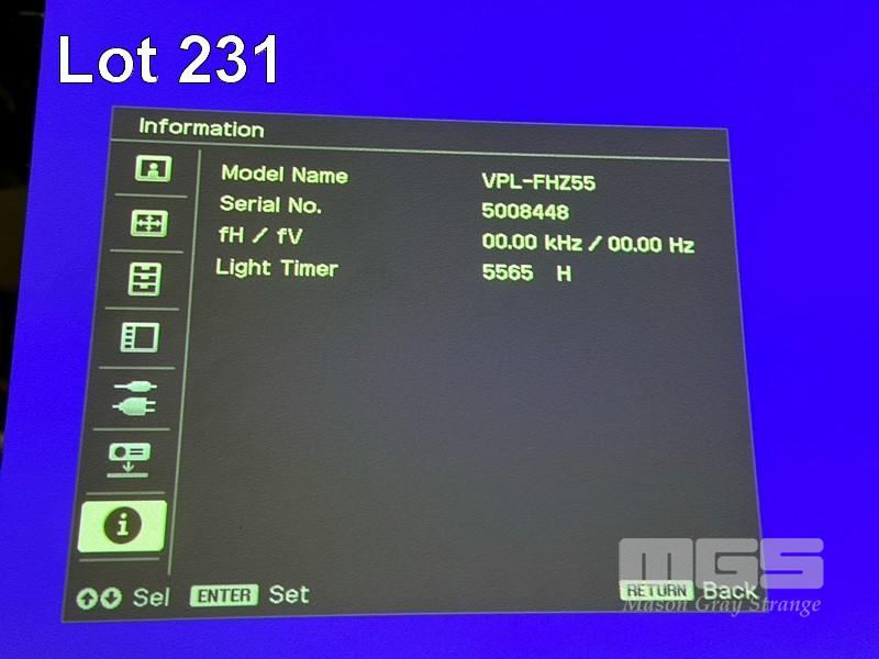 LASER PROJECTOR, SONY VPL-FHZ55 WUXGA 3LCD, 4,000 LUMENS, 5,565 HOURS SHOWING WITH REMOTE S/N:5008448