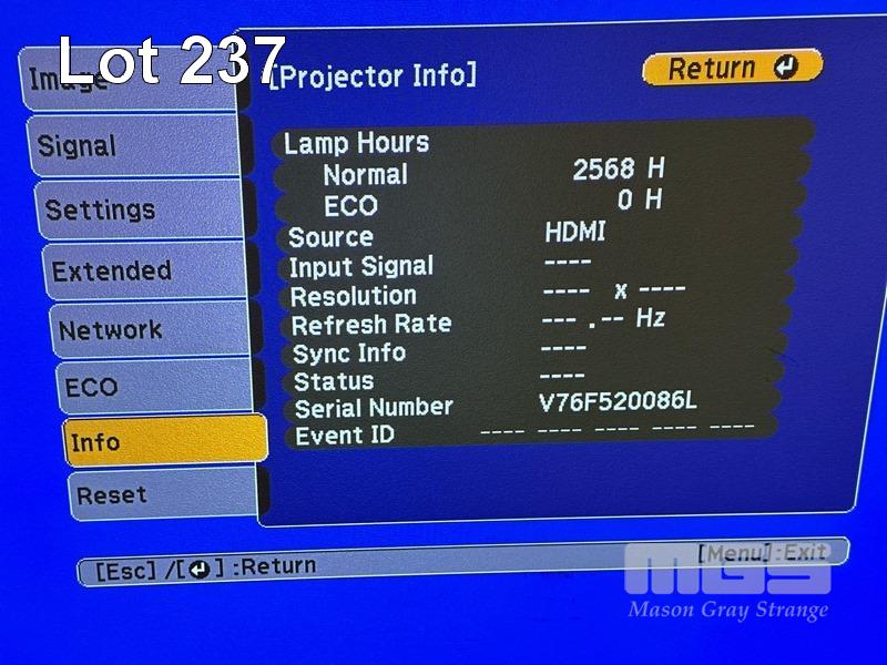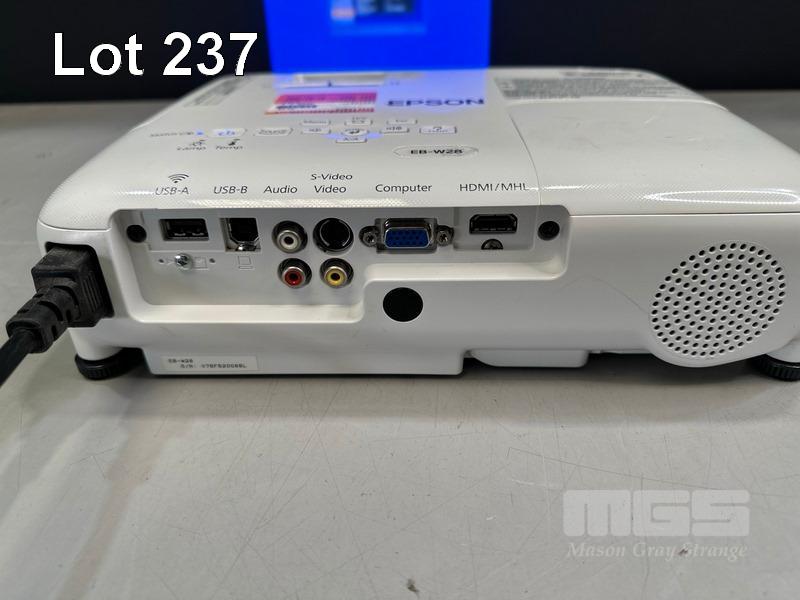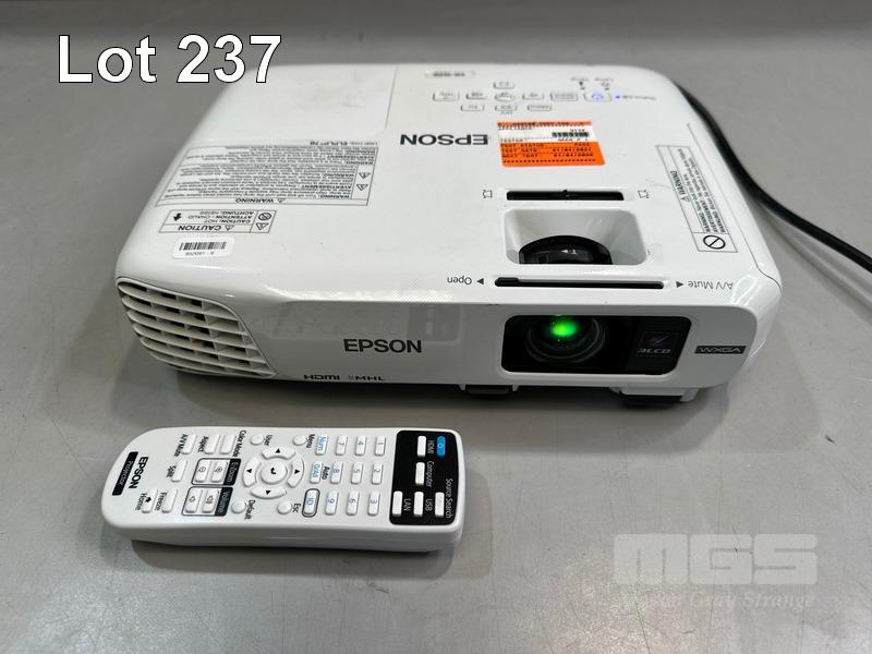 PROJECTOR, EPSON EB-W28 3LCD, 3,000 LUMENS, 2,568 HOURS SHOWING WITH REMOTE S/N:V76F520086L