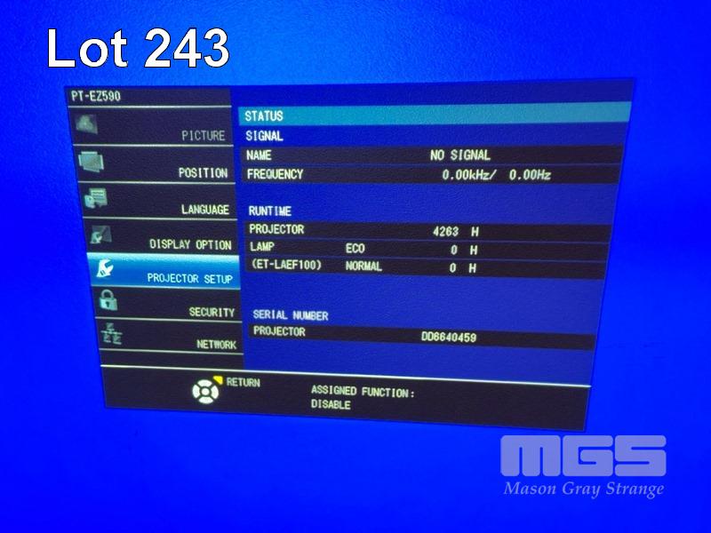 PROJECTOR, PANASONIC PT-EZ590 3LCD, 5,400 LUMENS, 4,263 HOURS SHOWING WITH REMOTE S/N:DD6640459