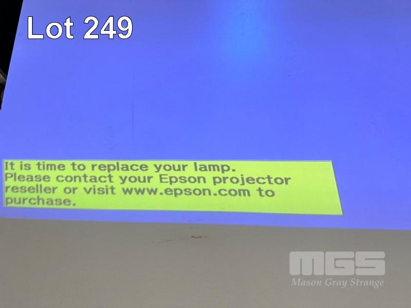 PROJECTOR, EPSON EB-470 ULTRA SHORT THROW 3LCD, 2,600 LUMENS, 2,937 NORMAL HOURS SHOWING WITH REMOTE & BRACKET (NOTE: MESSAGE TIME TO REPLACE LAMP) S/N:QVWK4100055