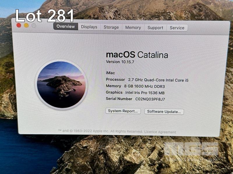 APPLE iMAC (A1418), CORE i5 4570R (4TH GEN) @ 2.7GHz, 8GB DDR3 RAM, 1TB SATA HDD, BUILT-IN 21.5" DISPLAY (1920x1080), INTEL IRIS PRO GRAPHICS, Wi-Fi, BLUETOOTH, MAC OS 10.15 INSTALLED, CORDLESS KEYBOARD & USB MOUSE S/N:C02NQ03PF8J7