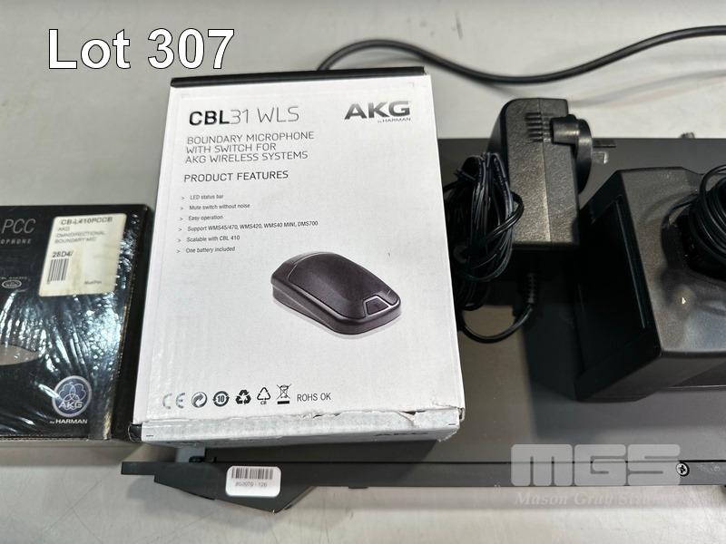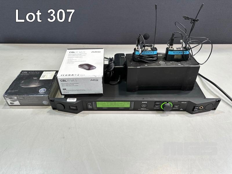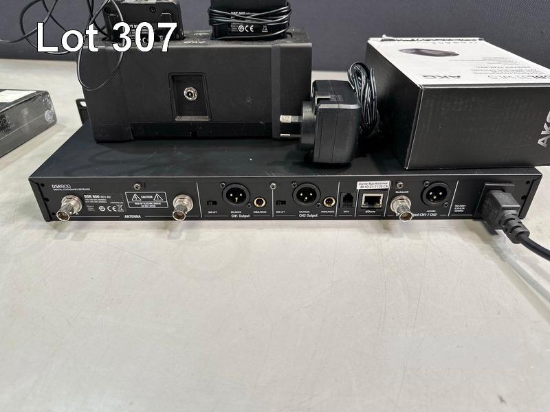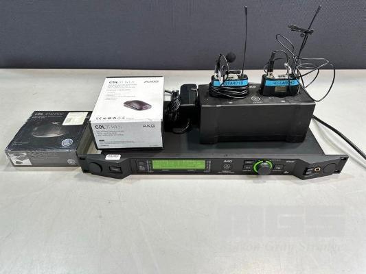 AKG DSR800 DIGITAL WIRELESS STATIONARY RECEIVER WITH 2 x AKG DPT800 BODYPACK TRANSMITTERS, 2 x LAPEL MICROPHONES, 1 x AKG CU800 CHARGING UNIT, 1 x POWER SUPPLY, 1 x AKG CBL31WLS BOUNDARY MICROPHONE & 1 x AKG CBL410PCC CONFERENCE MICROPHONE S/N:VT3867007333
