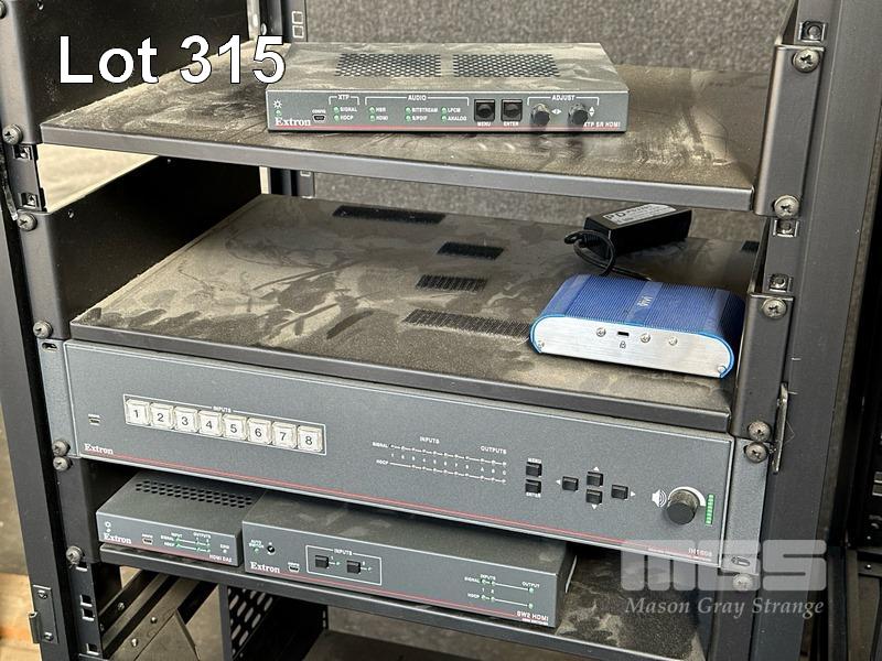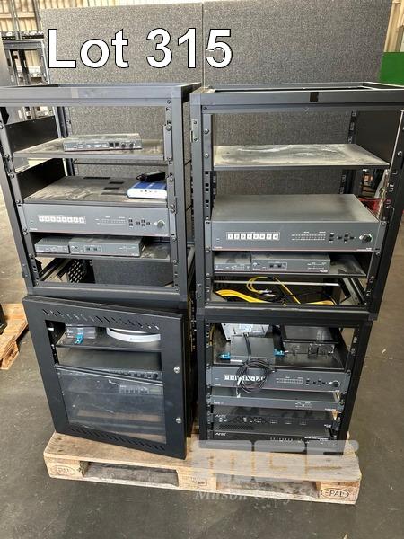 3 x DATA RACK FRAMES, 12RU 1 x DATA RACK FRAME, 12RU WITH DOOR (NO KEY) WITH CONTENTS INC. EXTRON & AMX EQUIPMENT
