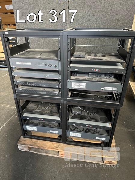 4 x DATA RACK FRAMES, 12RU WITH CONTENTS INC. NEXIA, EXTRON & AMX EQUIPMENT