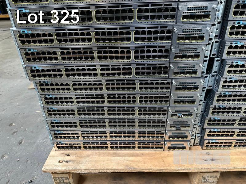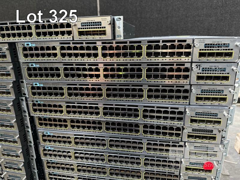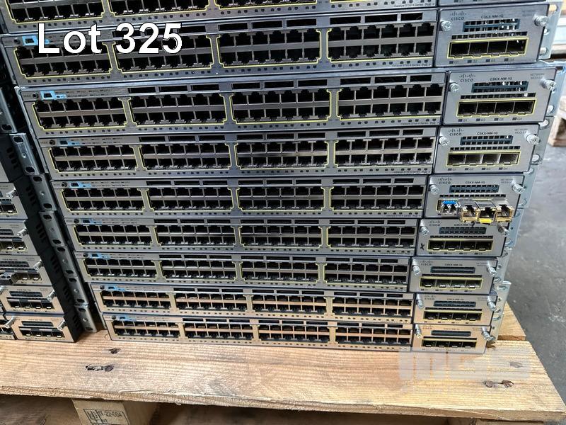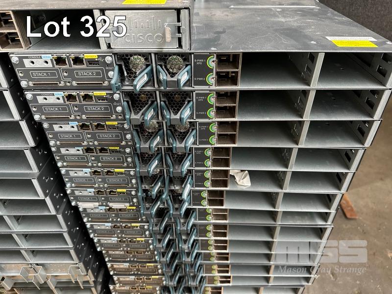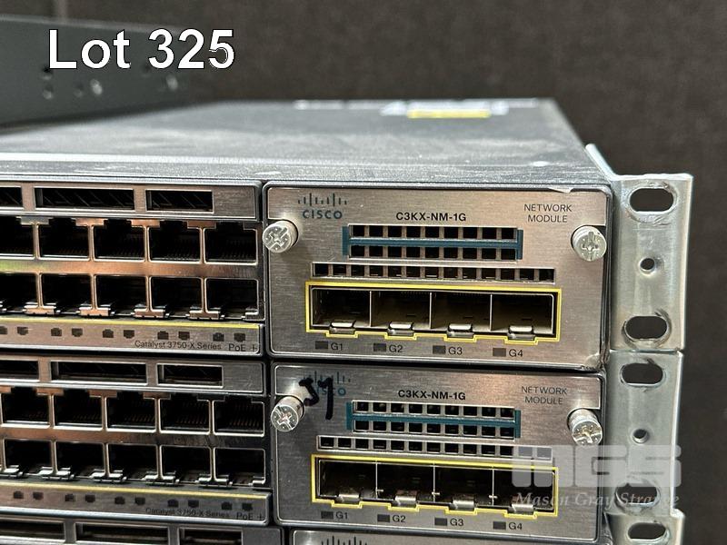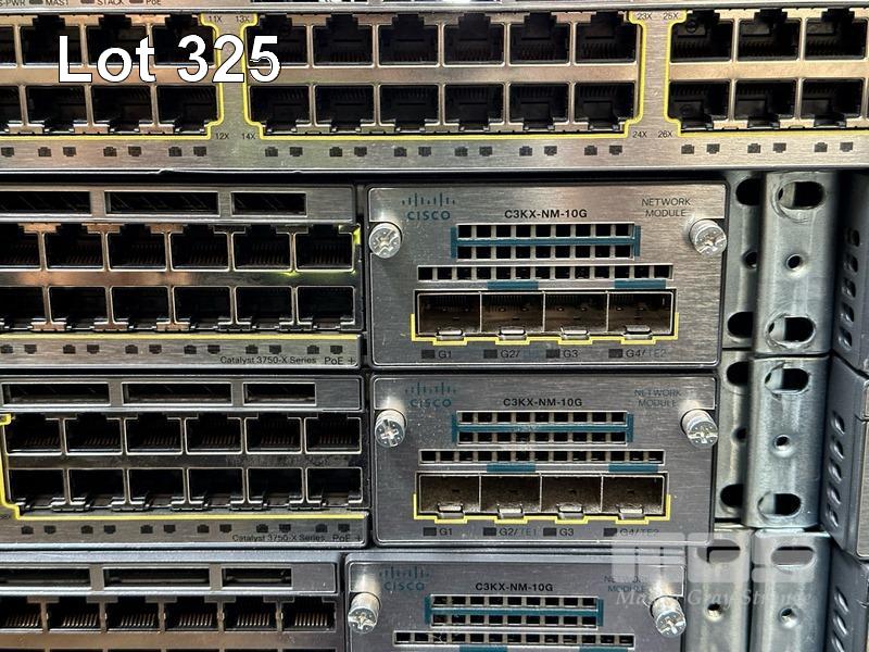 18 x CISCO CATALYST 3750-X PoE+ 48-PORT SWITCHES, WS-C3750X-48P-S EACH WITH C3KX-NM-10G NETWORK MODULES 19 x CISCO CATALYST 3750-X PoE+ 48-PORT SWITCHES, WS-C3750X-48P-S EACH WITH C3KX-NM-1G NETWORK MODULES (ALL NO POWER SUPPLIES)