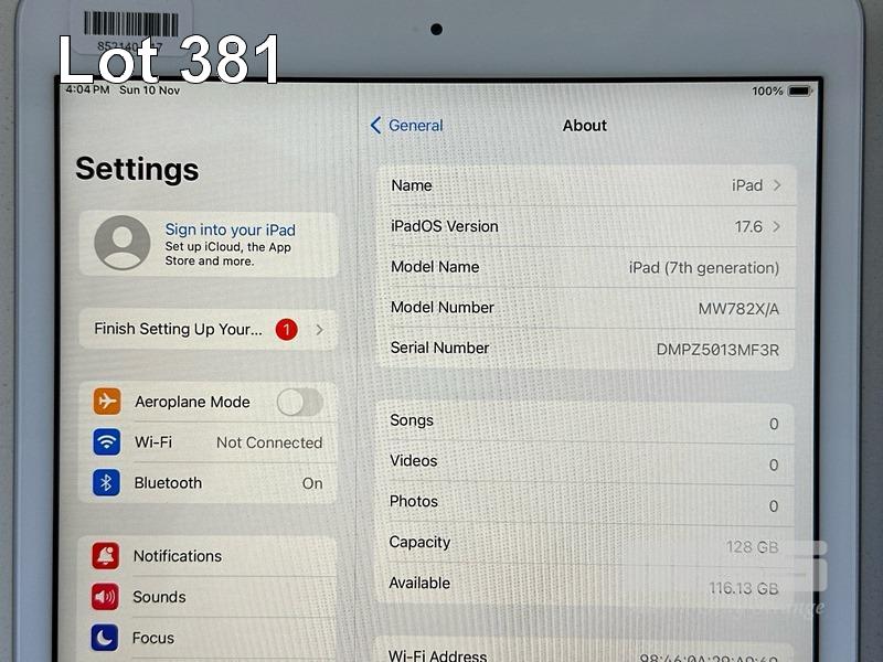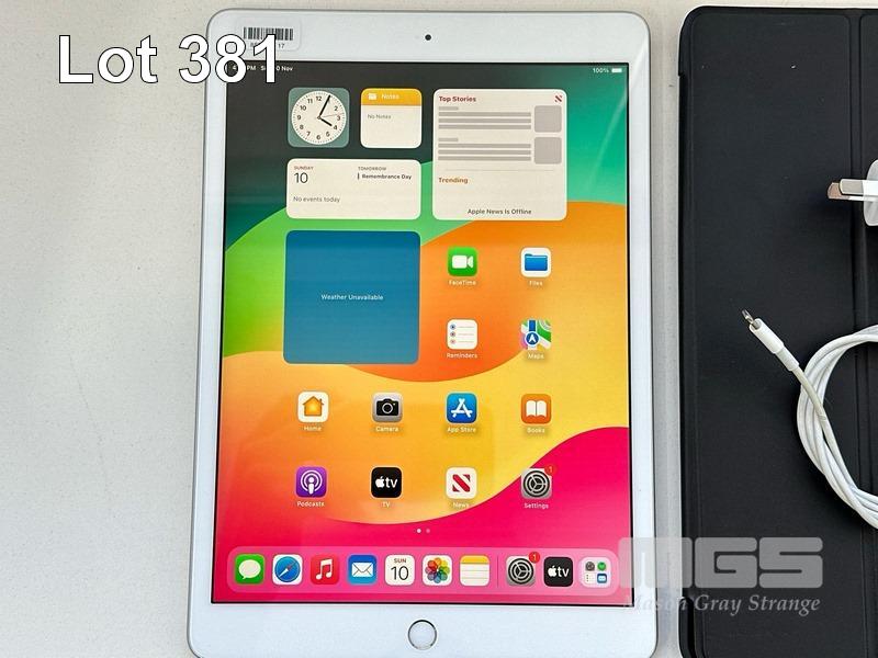APPLE iPAD 7TH GEN, 128GB, Wi-Fi, SILVER, MODEL MW782X/A, A2197 WITH COVER, CABLE & CHARGER S/N:DMPZ5013MF3R