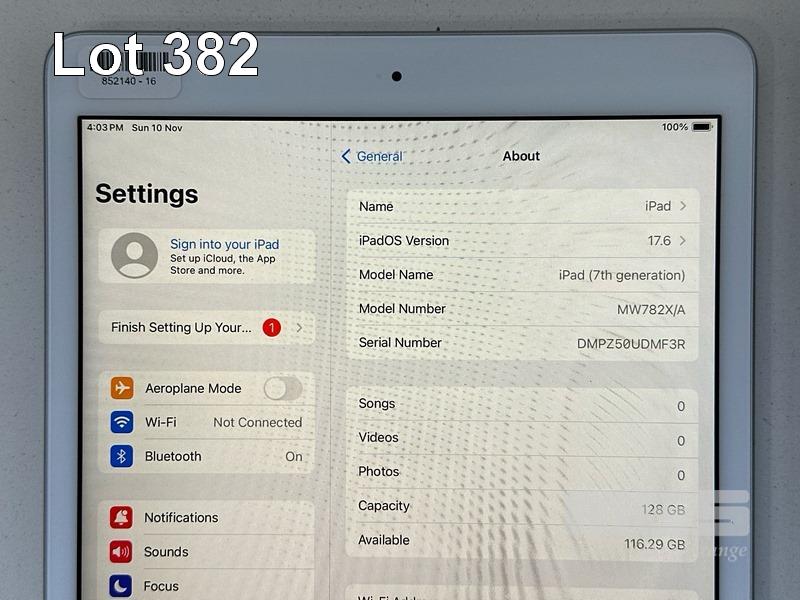 APPLE iPAD 7TH GEN, 128GB, Wi-Fi, SILVER, MODEL MW782X/A, A2197 WITH COVER, CABLE & CHARGER S/N:DMPZ50UDMF3R