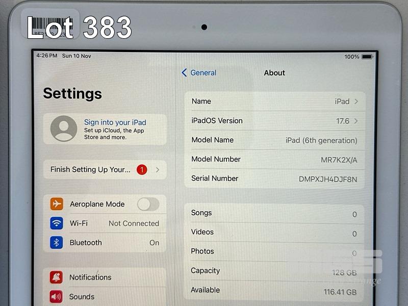 APPLE iPAD 6TH GEN, 128GB, Wi-Fi, SILVER, MODEL MR7K2X/A, A1893 WITH COVER (NO CABLE, NO CHARGER) S/N:DMPXJH4DJF8N
