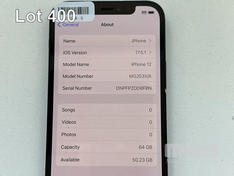 APPLE iPHONE 12, 64GB, BLACK, MODEL MGJ53X/A, BATTERY HEALTH 85% (NO CABLE, NO CHARGER) (NOTE: SCRATCHES ON SCREEN & MINOR DAMAGE) S/N:DNPFP2DD0F0N