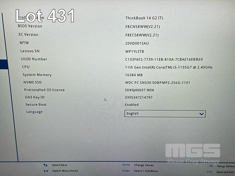LAPTOP, LENOVO THINKBOOK 14 G2 ITL, TYPE 20VD, CORE i5 1135G7 (11TH GEN) @ 2.4GHz, 16GB DDR4 RAM, 256GB NVMe SSD, 14" WIDESCREEN (1920x1080), INTEL IRIS Xe GRAPHICS, Wi-Fi, BLUETOOTH, WINDOWS 11 PRO INSTALLED & GENERIC USB-C POWER SUPPLY (NOTE: MINOR MARKS ON SCREEN) S/N:MP1YLSTB