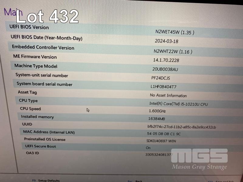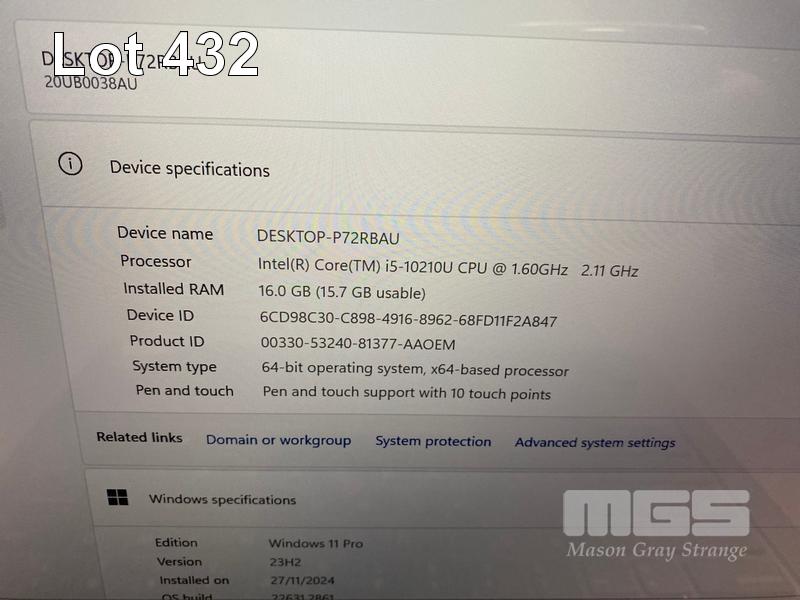 LAPTOP, LENOVO THINKPAD X1 YOGA (5TH GEN), TYPE 20UB, CORE i5 10210U (10TH GEN) @ 1.6GHz, 16GB DDR4 RAM, 256GB NVMe SSD, 14" TOUCHSCREEN (1920x1080), INTEL UHD GRAPHICS, Wi-Fi, BLUETOOTH, STYLUS, WINDOWS 11 PRO INSTALLED & GENERIC USB-C POWER SUPPLY (NOTE: MARKS ON SCREEN) S/N:PF24DCJS