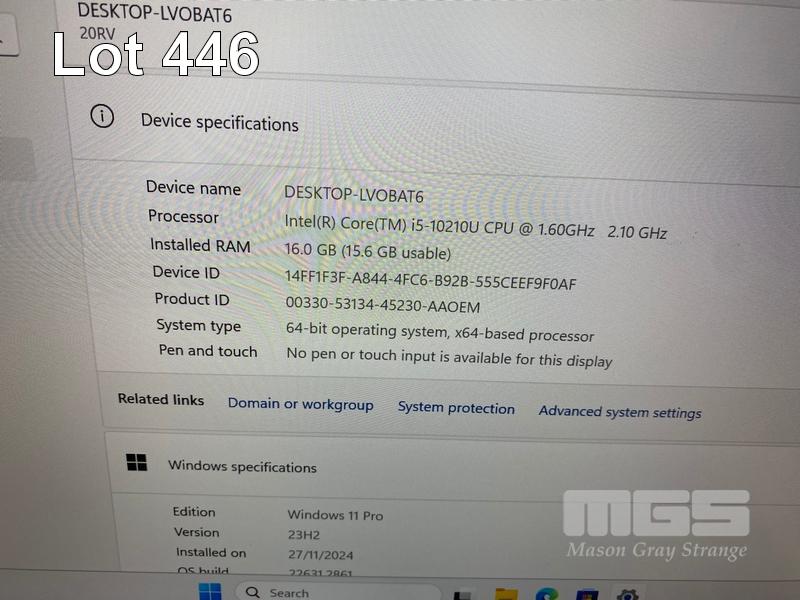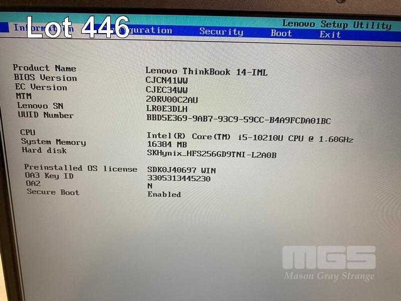 LAPTOP, LENOVO THINKBOOK 14-IML, TYPE 20RV, CORE i5 10210U (10TH GEN) @ 1.6GHz, 16GB DDR4 RAM, 256GB NVMe M.2 SSD, 14" WIDESCREEN (1920x1080), INTEL UHD GRAPHICS, Wi-Fi, BLUETOOTH, WINDOWS 11 PRO INSTALLED & POWER SUPPLY (NOTE: MINOR MARKS ON SCREEN) S/N:LR0E3DLH
