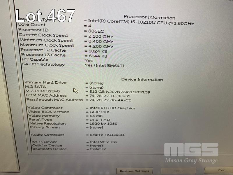LAPTOP, DELL LATITUDE 5410, CORE i5 10210U (10TH GEN) @ 1.6GHz, 8GB DDR4 RAM, 512GB NVMe M.2 SSD, 14" WIDESCREEN (1920x1080), INTEL UHD GRAPHICS, Wi-Fi, BLUETOOTH, WINDOWS 11 HOME INSTALLED (NO POWER SUPPLY) (NOTE: MARKS ON SCREEN, CASING PEELING, BATTERY NOT HOLDING CHARGE) S/N:4FJ4Q73