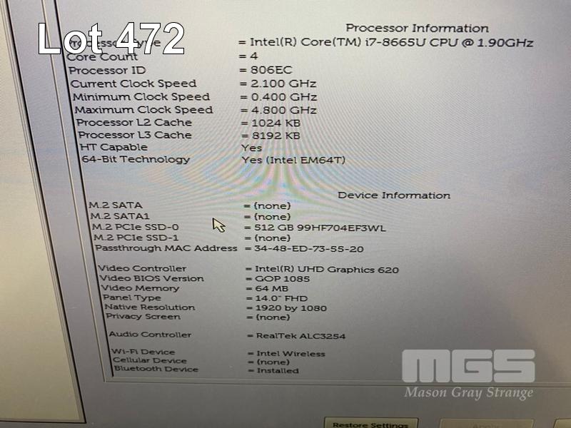 LAPTOP, DELL LATITUDE 7400, CORE i7 8665U (8TH GEN) @ 1.9GHz, 16GB DDR4 RAM, 512GB NVMe M.2 SSD, 14" WIDESCREEN (1920x1080), INTEL UHD GRAPHICS 620, Wi-Fi, BLUETOOTH, WINDOWS 11 HOME INSTALLED & POWER SUPPLY S/N:1X3T3Z2