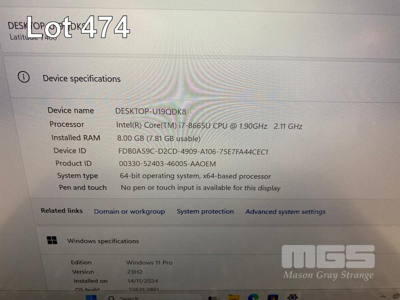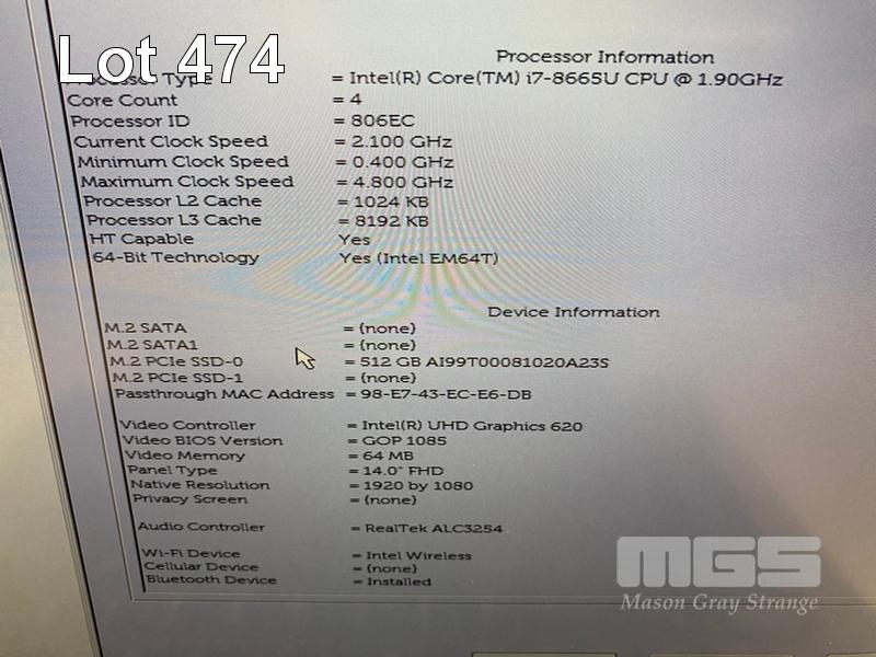 LAPTOP, DELL LATITUDE 7400, CORE i7 8665U (8TH GEN) @ 1.9GHz, 8GB DDR4 RAM, 512GB NVMe M.2 SSD, 14" WIDESCREEN (1920x1080), INTEL UHD GRAPHICS 620, Wi-Fi, BLUETOOTH, WINDOWS 11 PRO INSTALLED & POWER SUPPLY (NOTE: MARKS ON SCREEN) S/N:HT9XYY2