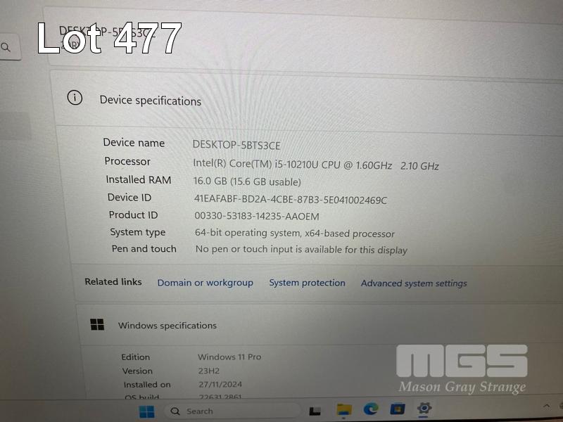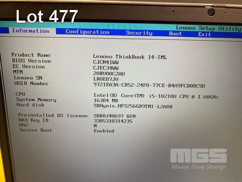 LAPTOP, LENOVO THINKBOOK 14-IML, TYPE 20RV, CORE i5 10210U (10TH GEN) @ 1.6GHz, 16GB DDR4 RAM, 256GB NVMe M.2 SSD, 14" WIDESCREEN (1920x1080), INTEL UHD GRAPHICS, Wi-Fi, BLUETOOTH, WINDOWS 11 PRO INSTALLED & POWER SUPPLY (NOTE: SMALL DENT ON CASING) S/N:LR0E87JV