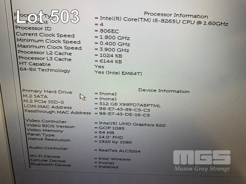 LAPTOP, DELL LATITUDE 5400, CORE i5 8265U (8TH GEN) @ 1.6GHz, 8GB DDR4 RAM, 512GB NVMe M.2 SSD, 14" WIDESCREEN (1920x1080), INTEL UHD GRAPHICS 620, Wi-Fi, BLUETOOTH, WINDOWS 11 HOME INSTALLED & POWER SUPPLY S/N:J4CG9Y2