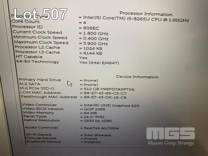 LAPTOP, DELL LATITUDE 5400, CORE i5 8265U (8TH GEN) @ 1.6GHz, 8GB DDR4 RAM, 512GB NVMe M.2 SSD, 14" WIDESCREEN (1920x1080), INTEL UHD GRAPHICS 620, Wi-Fi, BLUETOOTH, WINDOWS 11 HOME INSTALLED & POWER SUPPLY S/N:36CG9Y2