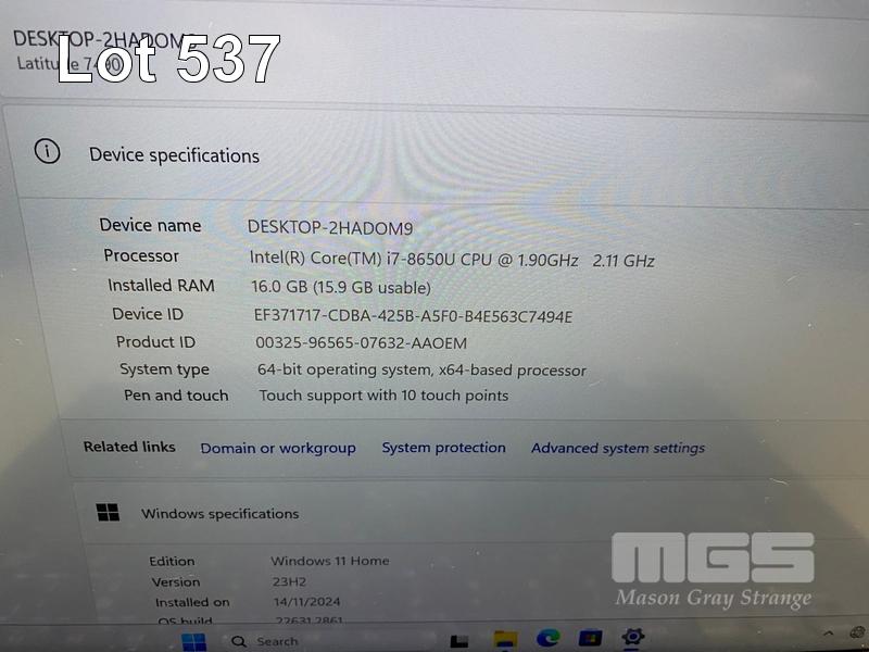 LAPTOP, DELL LATITUDE 7490, CORE i7 8650U (8TH GEN) @ 1.9GHz, 16GB DDR4 RAM, 512GB NVMe M.2 SSD, 14" TOUCHSCREEN (1920x1080), INTEL UHD GRAPHICS 620, Wi-Fi, BLUETOOTH, WINDOWS 11 HOME INSTALLED & POWER SUPPLY (NOTE: SWOLLEN BATTERY) S/N:14R2RV2