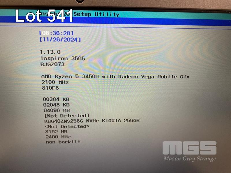 LAPTOP, DELL INSPIRON 15 3505, AMD RYZEN 5 3450U @ 2.1GHz, 8GB DDR4 RAM, 256GB NVMe M.2 SSD, 15.6" WIDESCREEN (1920x1080), Wi-Fi, BLUETOOTH, WINDOWS 10 HOME INSTALLED & POWER SUPPLY (NOTE: MARKS ON SCREEN) S/N:BJGZ073
