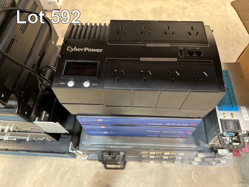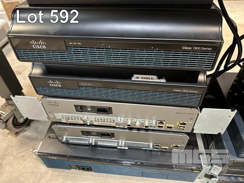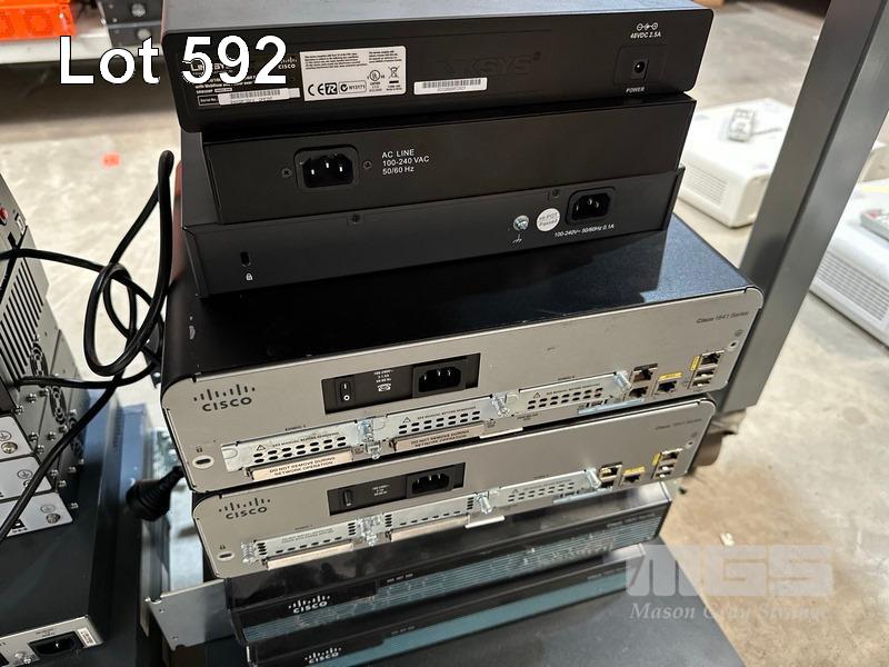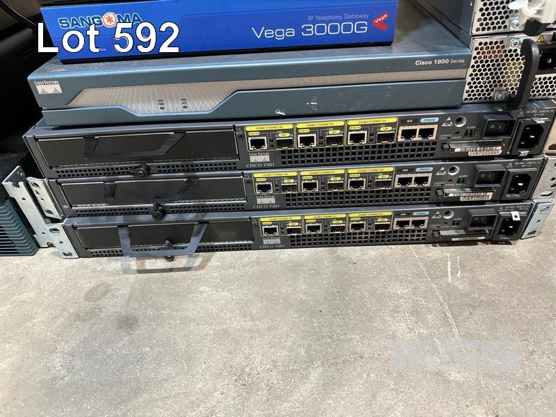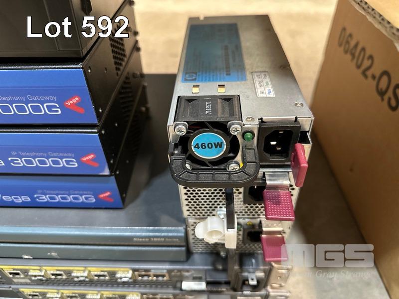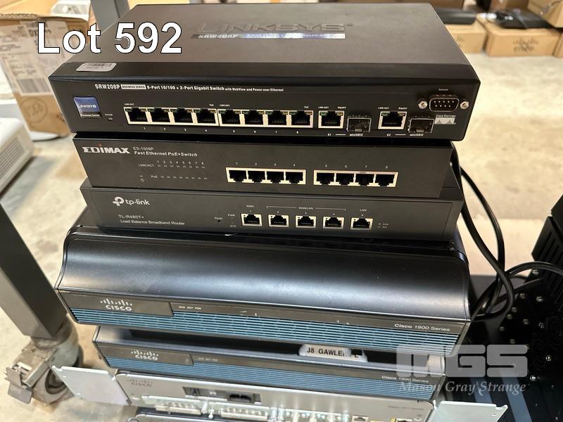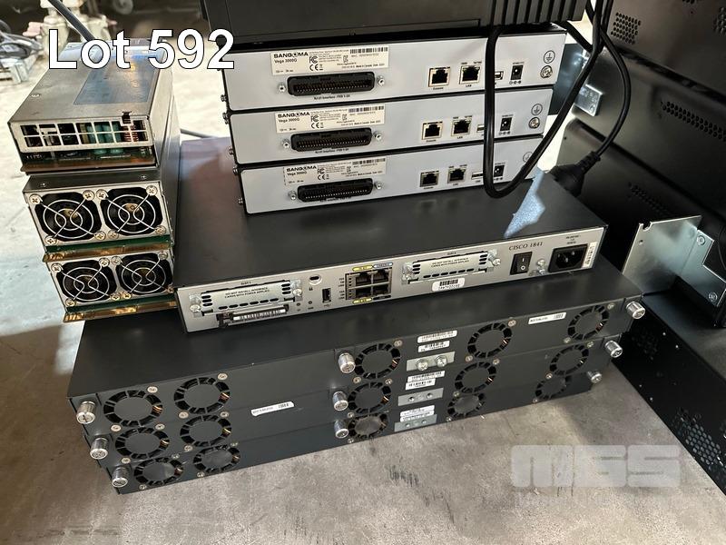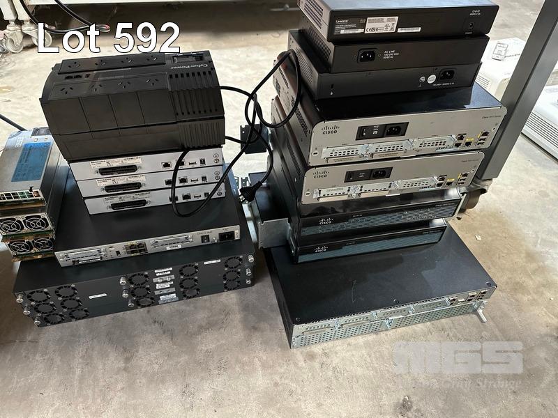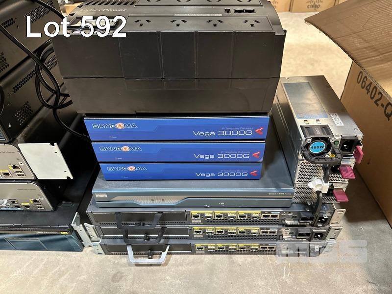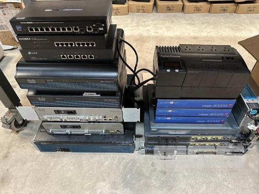1 x LINKSYS SRW208P 8-PORT SWITCH, 1 x EDIMAX ES-1008P 8-PORT SWITCH, 1 x TP-LINK TL-R480T+ LOAD BALANCE BROADBAND ROUTER, 4 x CISCO 1900 SERIES ROUTERS, 1 x CISCO 2900 SERIES ROUTER, 3 x SANGMA VEGA 3000G IP TELEPHONY GATEWAY 1 x CYPERPOWER UPS 1 x CISCO 1800 SERIES ROUTER, 3 x CISCO 7301 ROUTERS, 3 x HP SERVER POWER SUPPLIES