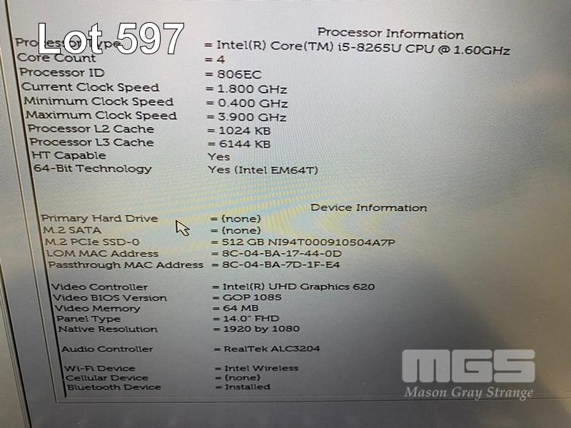 LAPTOP, DELL LATITUDE 5400, CORE i5 8265U (8TH GEN) @ 1.6GHz, 8GB DDR4 RAM, 512GB NVMe M.2 SSD, 14" WIDESCREEN (1920x1080), INTEL UHD GRAPHICS 620, Wi-Fi, BLUETOOTH, WINDOWS 11 HOME INSTALLED & POWER SUPPLY (NOTE: MARKS ON SCREEN) S/N:HW883X2