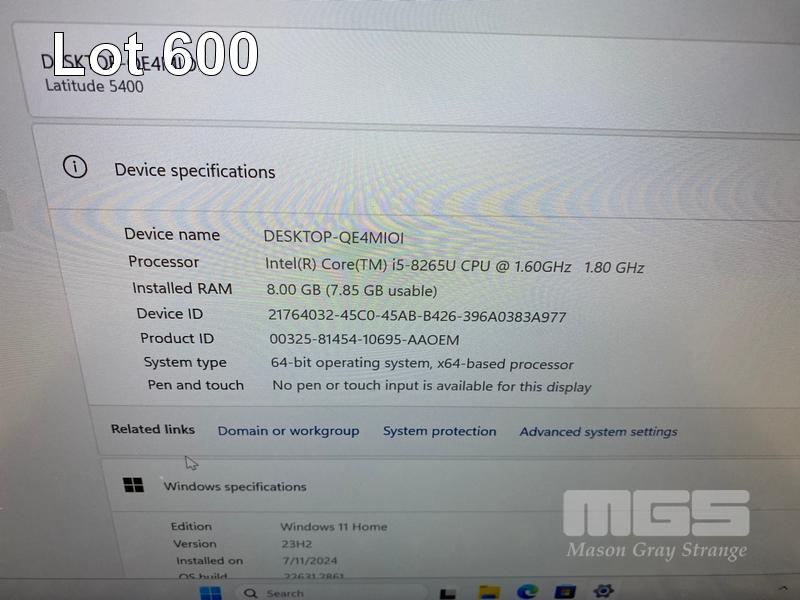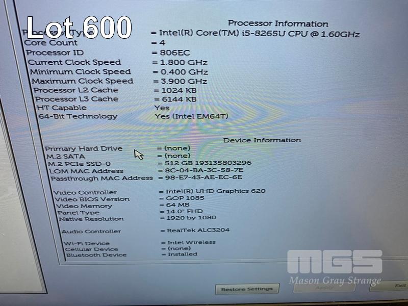 LAPTOP, DELL LATITUDE 5400, CORE i5 8265U (8TH GEN) @ 1.6GHz, 8GB DDR4 RAM, 512GB NVMe M.2 SSD, 14" WIDESCREEN (1920x1080), INTEL UHD GRAPHICS 620, Wi-Fi, BLUETOOTH, WINDOWS 11 HOME INSTALLED & POWER SUPPLY (NOTE: MARKS ON SCREEN) S/N:H9XPZY2