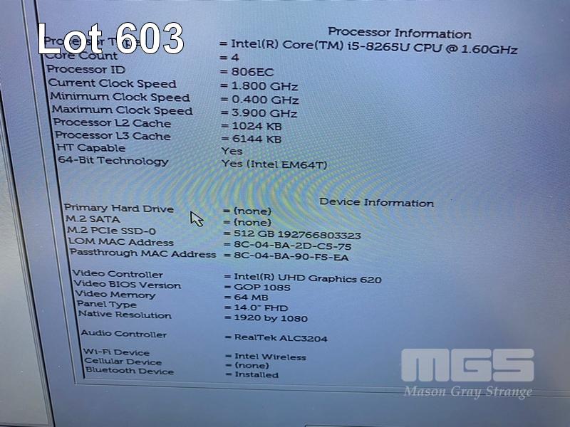 LAPTOP, DELL LATITUDE 5400, CORE i5 8265U (8TH GEN) @ 1.6GHz, 8GB DDR4 RAM, 512GB NVMe M.2 SSD, 14" WIDESCREEN (1920x1080), INTEL UHD GRAPHICS 620, Wi-Fi, BLUETOOTH, WINDOWS 11 HOME INSTALLED & POWER SUPPLY (NOTE: MARKS ON SCREEN) S/N:8JYJ8Y2