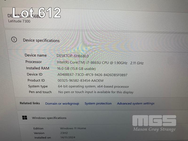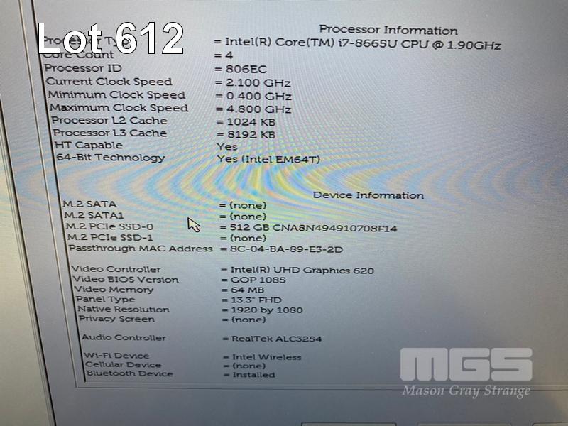 LAPTOP, DELL LATITUDE 7300, CORE i7 8665U (8TH GEN) @ 1.9GHz, 16GB DDR4 RAM, 512GB NVMe M.2 SSD, 13.3" WIDESCREEN (1920x1080), INTEL UHD GRAPHICS 620, Wi-Fi, BLUETOOTH, WINDOWS 11 HOME INSTALLED (NO POWER SUPPLY) (NOTE: BATTERY NOT HOLDING CHARGE, RUBBER PAD MISSING ON BOTTOM & REAR OF LAPTOP) S/N:FS986Y2